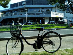 宿泊予定のホテルで、無料で自転車を貸してもらえることを知り、速攻レンタル。なんと電動自転車も選べたので迷わず選択、人生初電動(笑)。剥離骨折もかなり回復してきていたので、自転車も問題なく乗ることができ、市民会館の駐輪場へ。自転車で会館いくと、なんだか地元民みたいな感じですね。